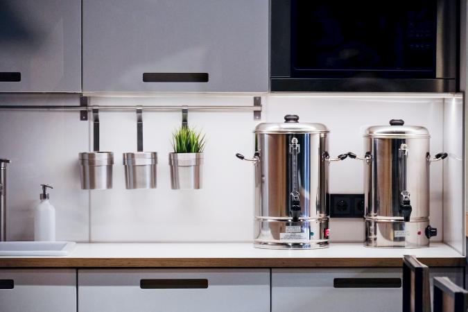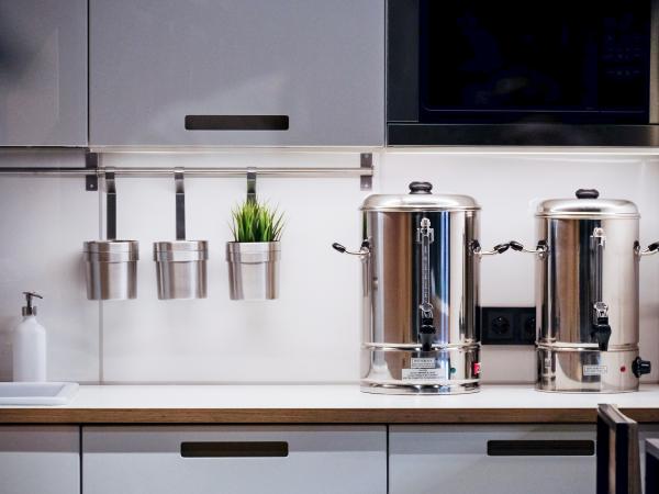 - Кухня-кафе с холодильником, тостером и микроволновкой
